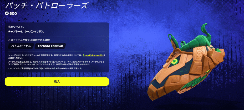 本日のアイテムショップに、フォートナイトのオリジナルシューズ「パッチ・パトローラーズ」が登場しました!
