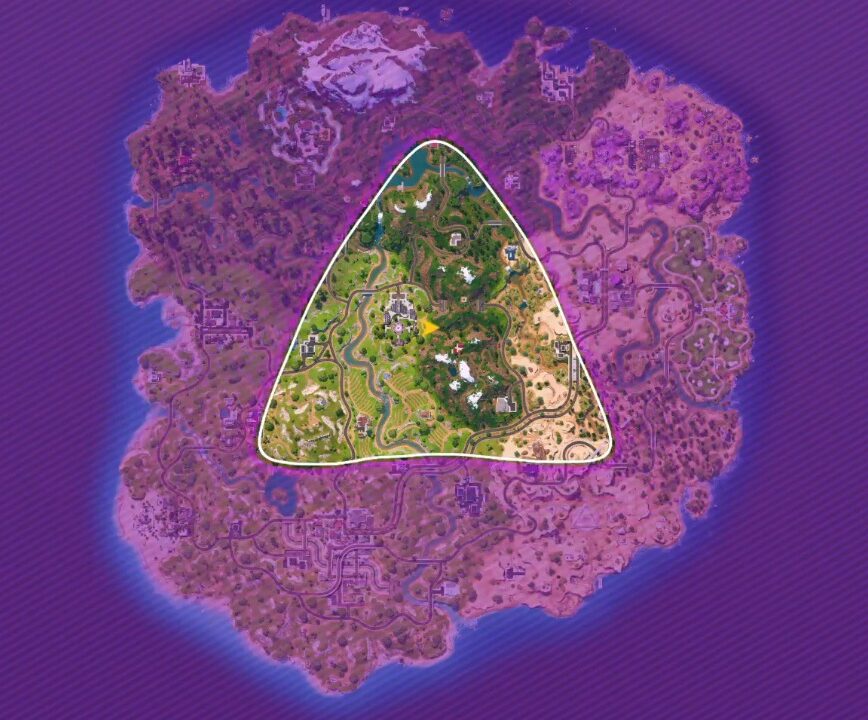 三角形のストームは、フォートナイトのマッチ中に低確率で発生する特殊なストーム現象です。通常の円形ストームとは異なり、三角形の形状をしている点が大きな特徴で、安全地帯の移動ルートや終盤の立ち回りに大きな影響を与えます。